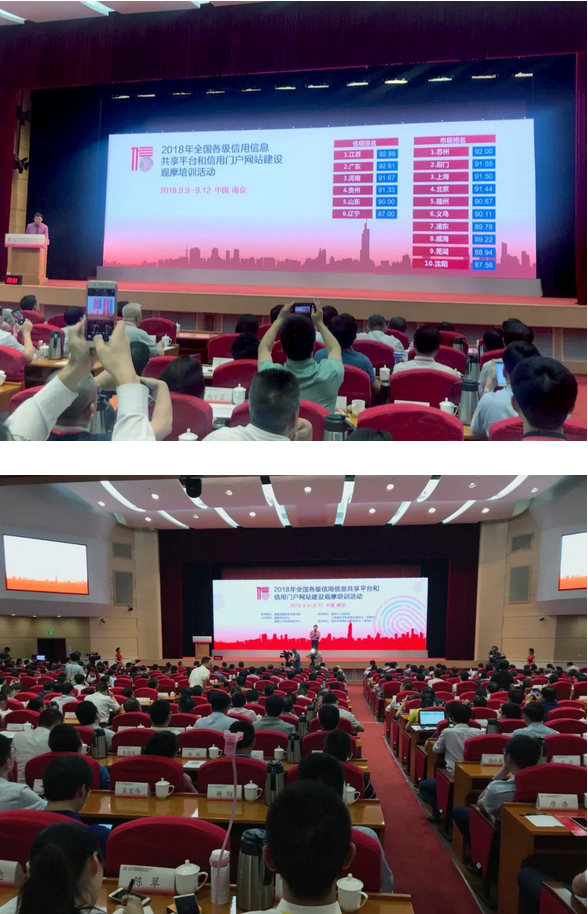2018年全國各級信用信息共享平臺和信用門戶網(wǎng)站建設(shè)觀摩培訓(xùn)活動在南京落下帷幕,圖為9月12日觀摩培訓(xùn)活動現(xiàn)場。
